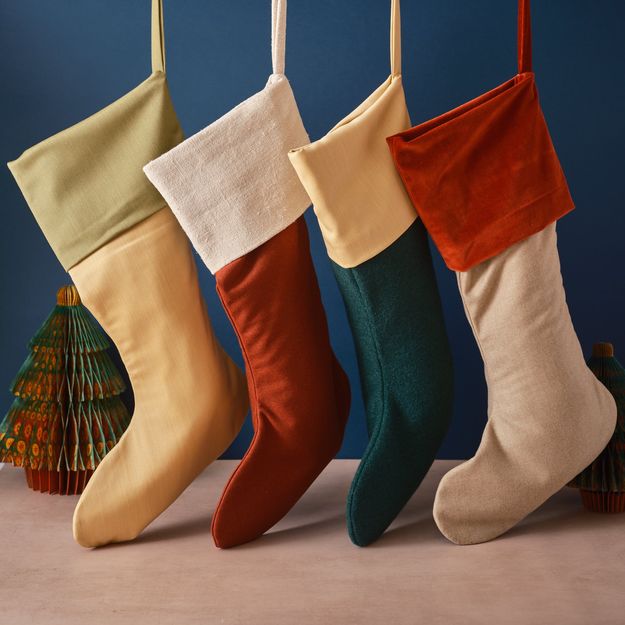 Lovingly crafted in our London-based workshop. Each stocking is one of a kind, hand-sewn from a carefully curated selection of luxurious wools, velvets, cottons, and silks.